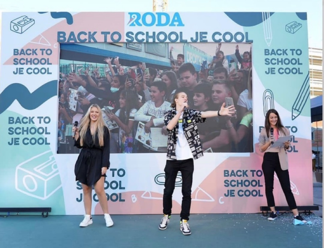 Ispred Roda centra, organizovali smo Meet Up sa influenserima, povodom početka nove školske godine. Influenseri Elena Stojčevski i Marko Arsenijević su najavili druženje i pozvali pratioce da dođu na Back to School dan u Rodi. Dočekali smo ih uz brojne aktivacije (Tik Tok koreografija, Kviz znanja, Fotografisanje sa influenserima…)